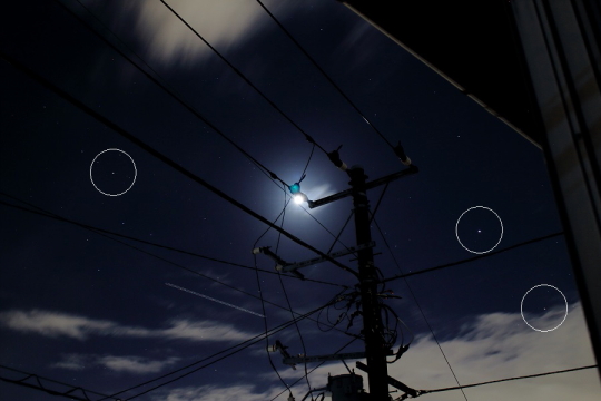 今夜は4つの衛星が広く展開して